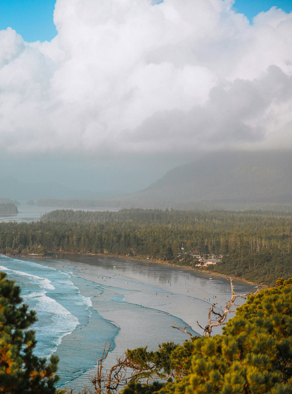 Long Beach is the largest beach in Tofino. It offers expansive views, consistent swells, and breaks for all levels.
